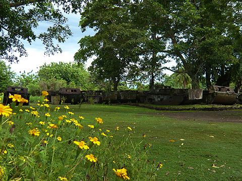 第二次世界大戦で使われていた戦車、戦闘機、軍艦がそのまま残されており、首都ホニアラがある