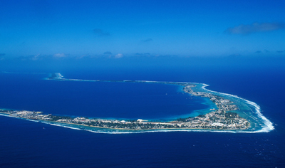 マジュロ環礁は57の小島が100kmにわたってつながる細長い楕円形で、